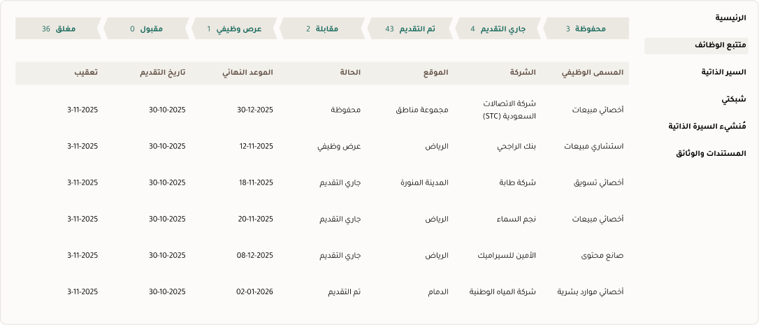 رزق" يمنحك لوحة تحكم واضحة لتتبع كل تقديماتك، ببساطة